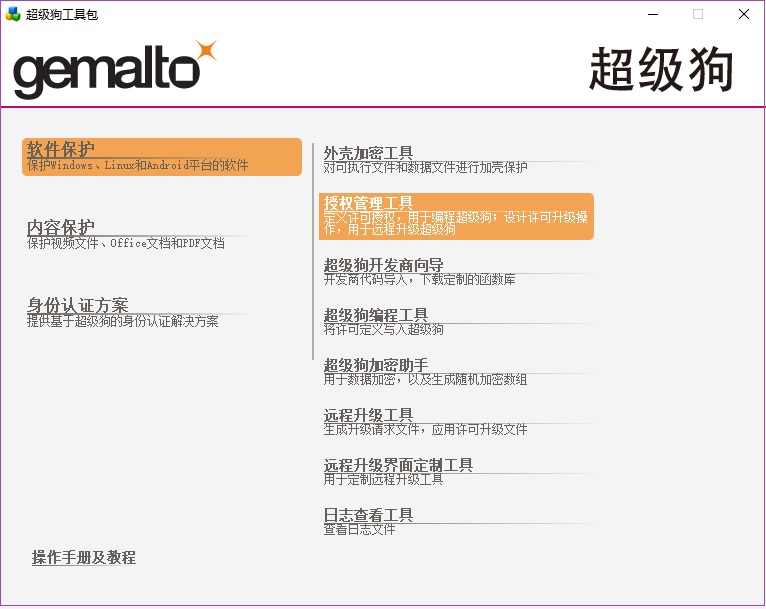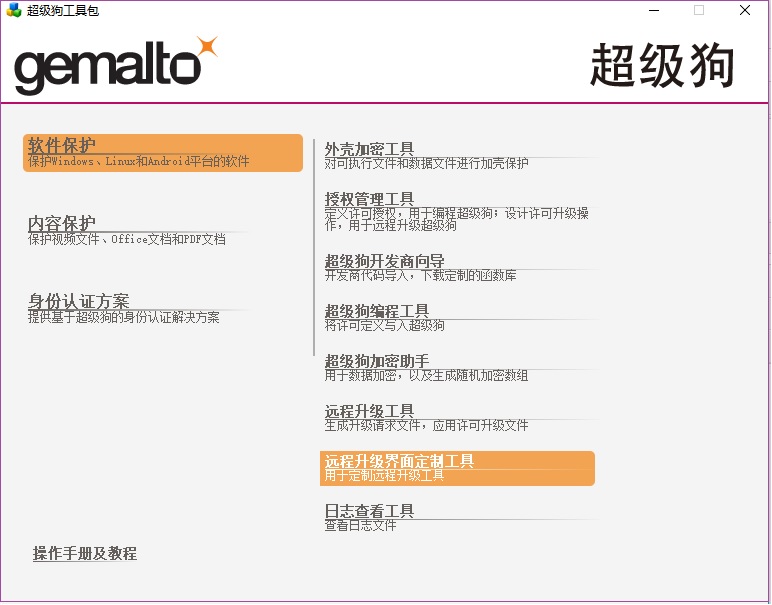 超級狗授權靈活,操作簡單,當用戶需要對已經發放的超級狗授權內容做修改,只需要一個激活碼給用戶,無須收回超級狗硬件重寫。