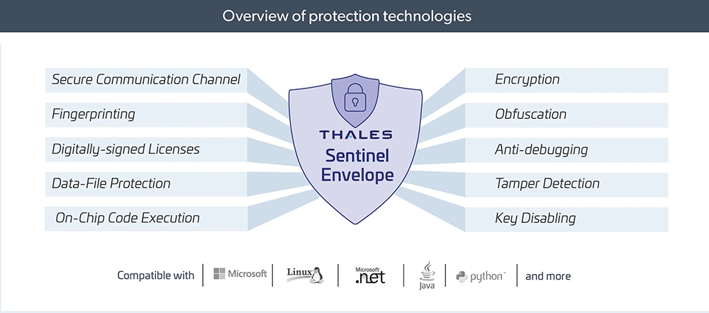 圣天諾外殼為各領(lǐng)域的軟件開發(fā)商提供全面的軟件保護。無論是托管代碼框架與腳本、AI模型,還是高度敏感的功能,我們都能提供專業(yè)的保護。